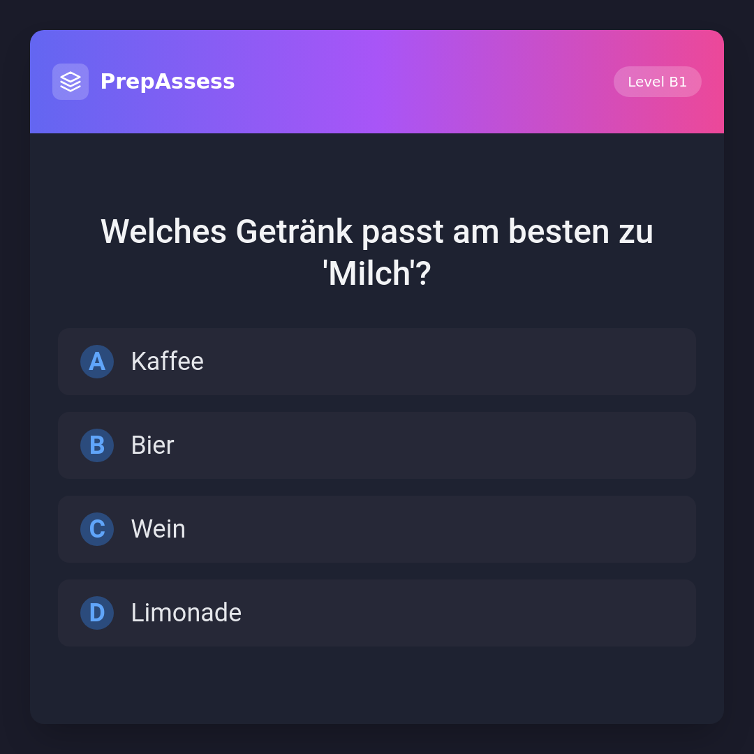 Welches Getränk passt am besten zu 'Milch'?