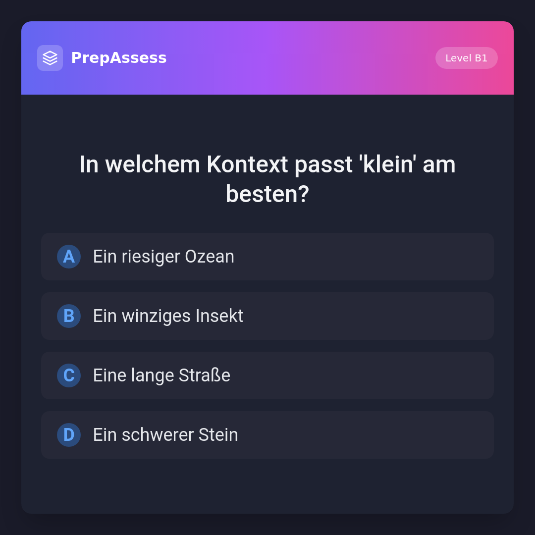 In welchem Kontext passt 'klein' am besten?
