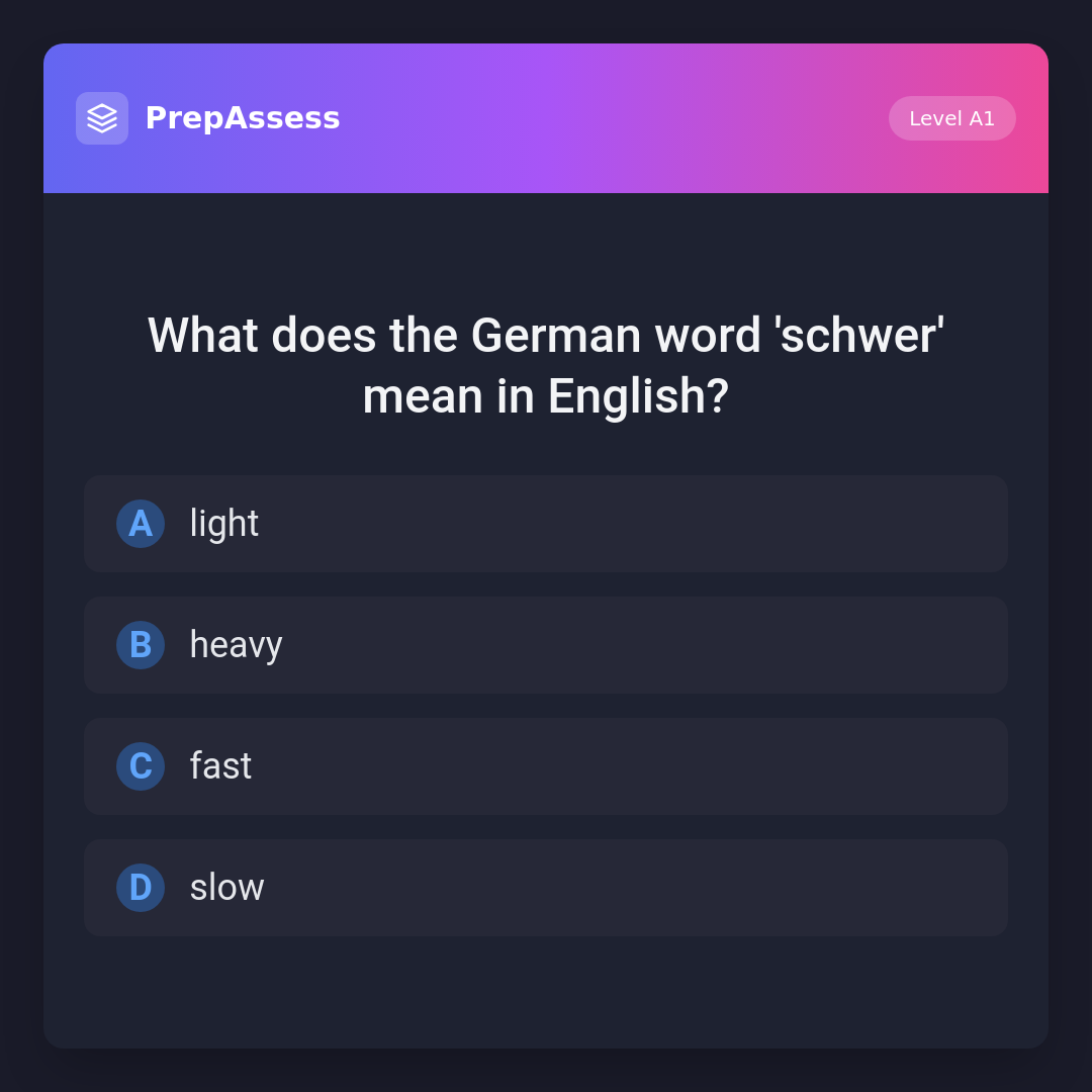 What does the German word 'schwer' mean in English?