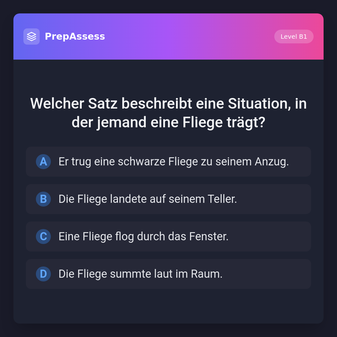 Welcher Satz beschreibt eine Situation, in der jemand eine Fliege trägt?