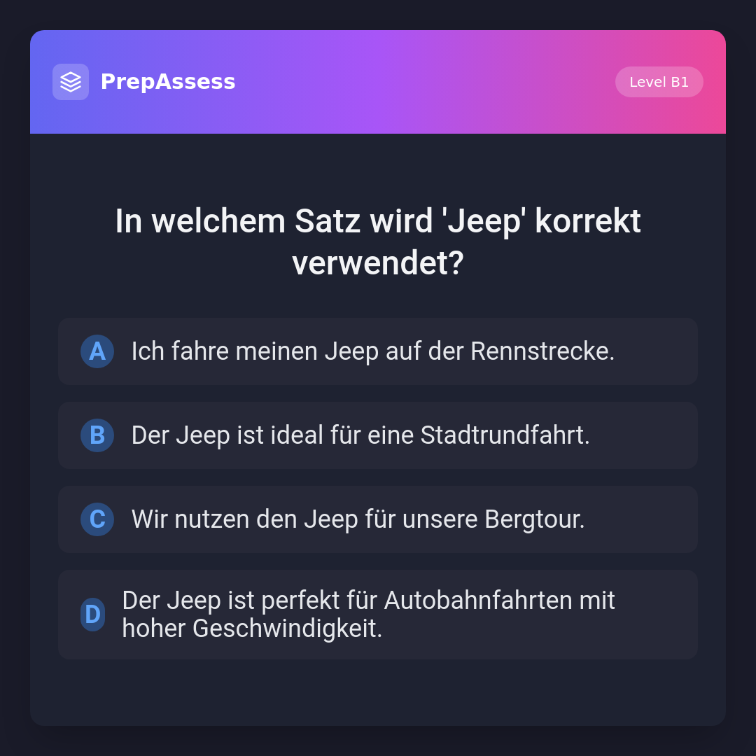 In welchem Satz wird 'Jeep' korrekt verwendet?