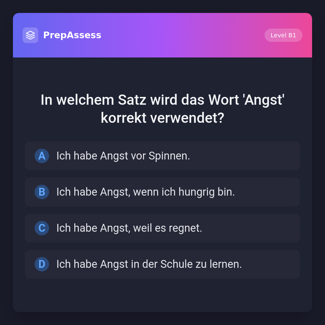 In welchem Satz wird das Wort 'Angst' korrekt verwendet?
