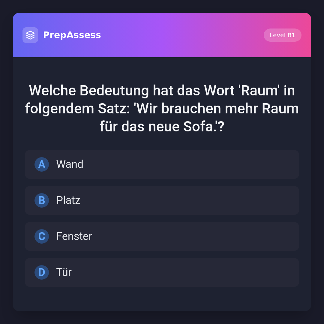 Welche Bedeutung hat das Wort 'Raum' in folgendem Satz: 'Wir brauchen mehr Raum für das neue Sofa.'?