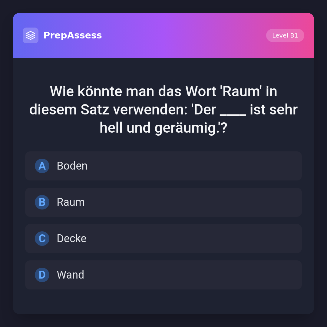 Wie könnte man das Wort 'Raum' in diesem Satz verwenden: 'Der ____ ist sehr hell und geräumig.'?