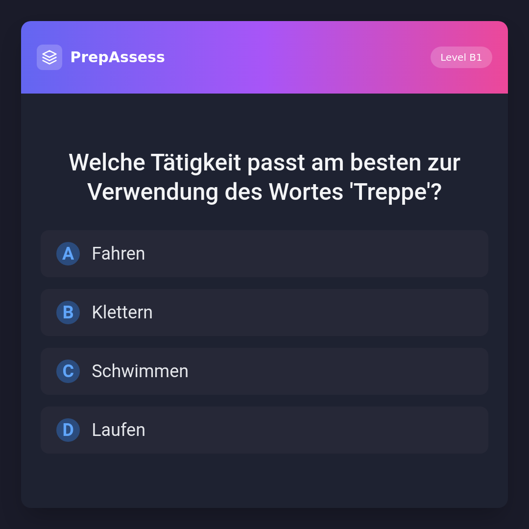 Welche Tätigkeit passt am besten zur Verwendung des Wortes 'Treppe'?