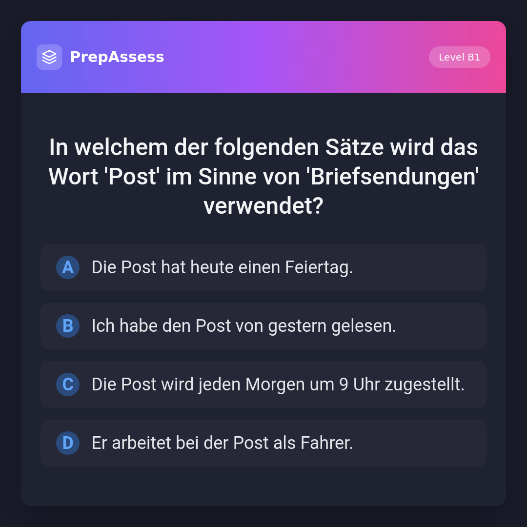 In welchem der folgenden Sätze wird das Wort 'Post' im Sinne von 'Briefsendungen' verwendet?