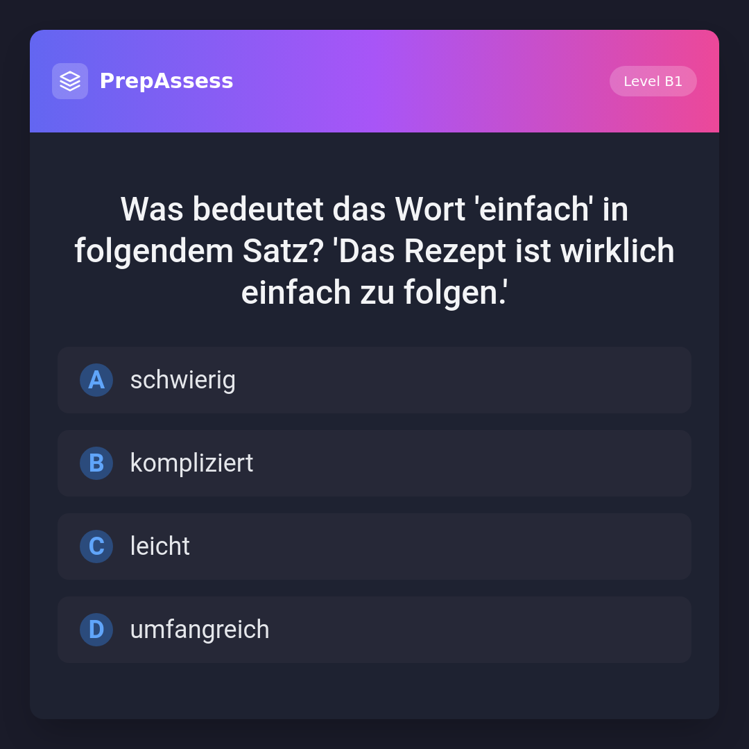 Was bedeutet das Wort 'einfach' in folgendem Satz? 'Das Rezept ist wirklich einfach zu folgen.'
