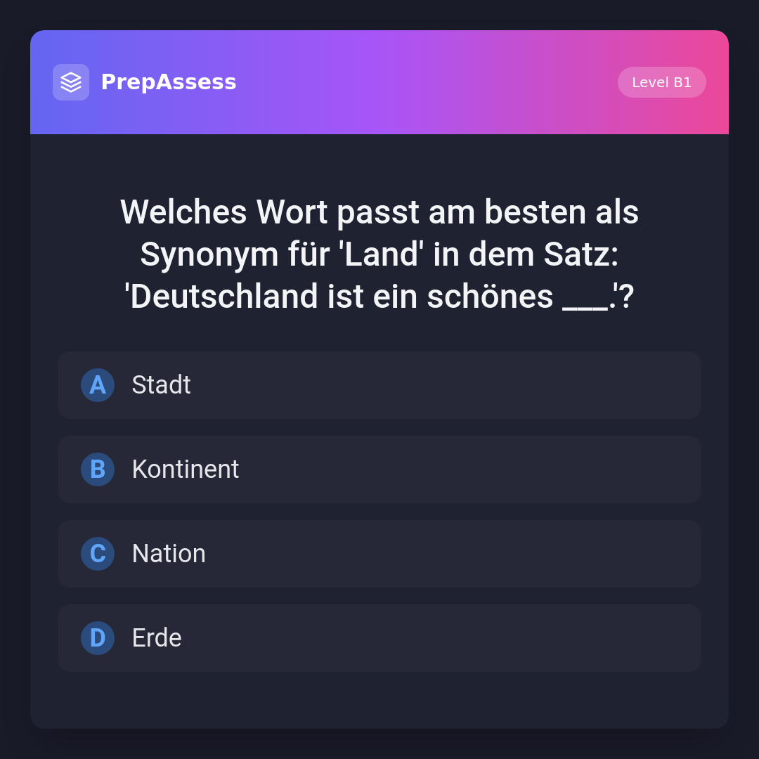 Welches Wort passt am besten als Synonym für 'Land' in dem Satz: 'Deutschland ist ein schönes ___.'?