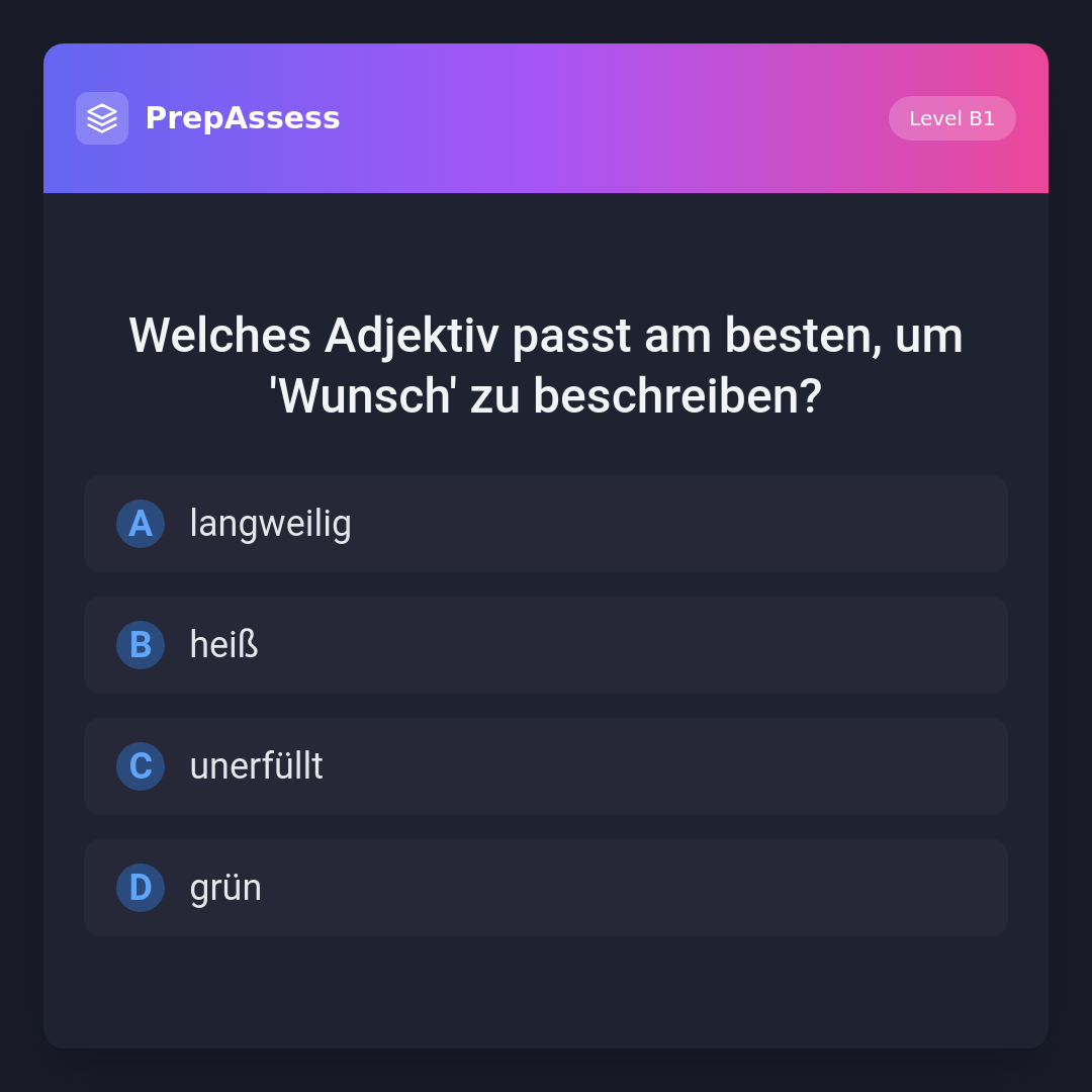 Welches Adjektiv passt am besten, um 'Wunsch' zu beschreiben?