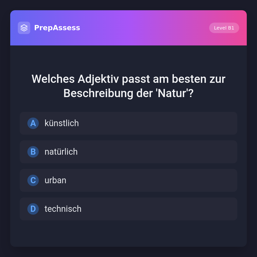 Welches Adjektiv passt am besten zur Beschreibung der 'Natur'?
