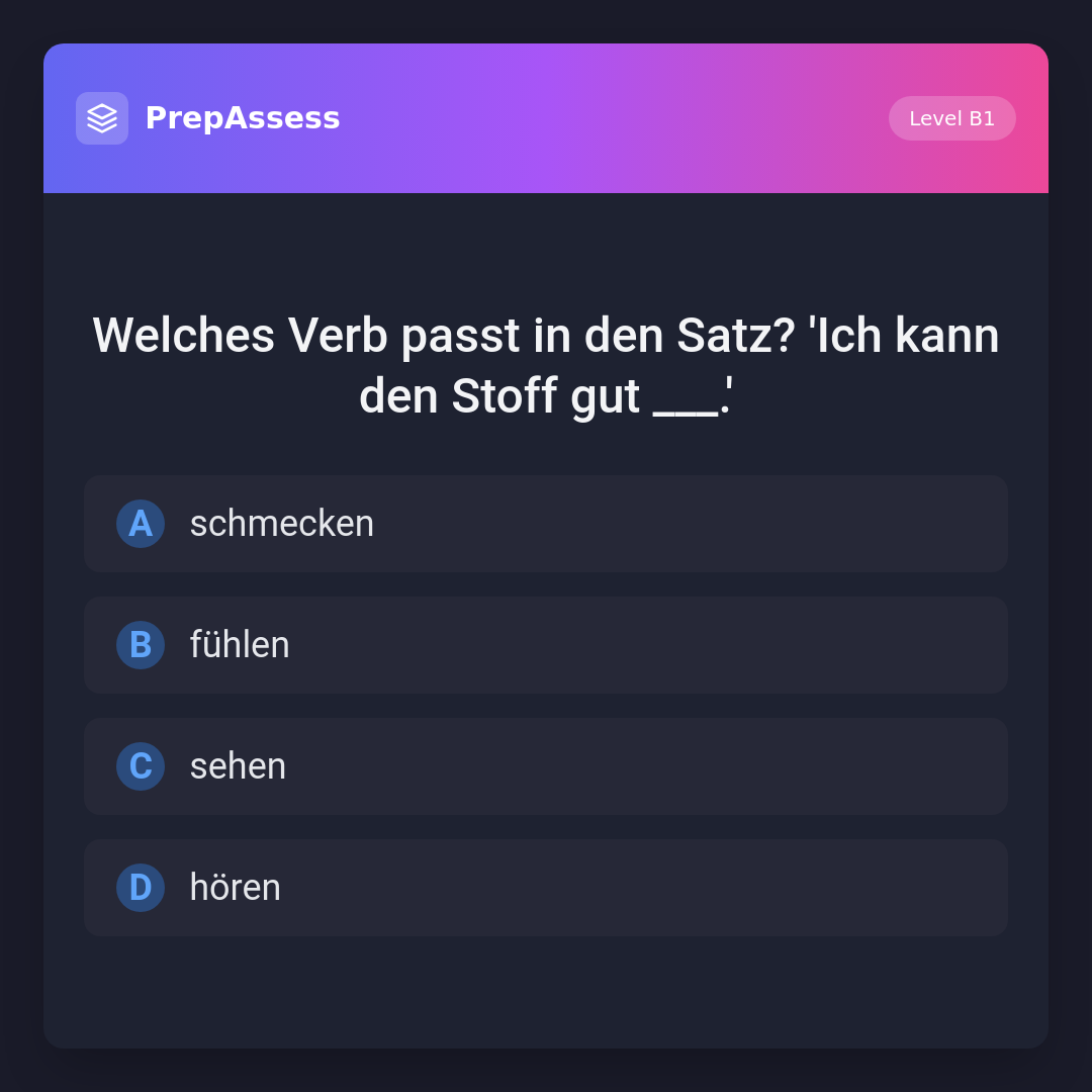Welches Verb passt in den Satz? 'Ich kann den Stoff gut ___.'