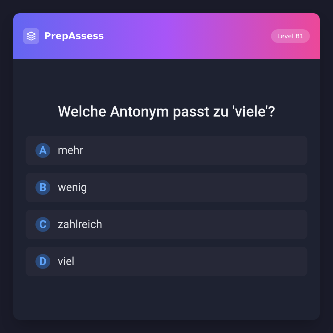 Welche Antonym passt zu 'viele'?
