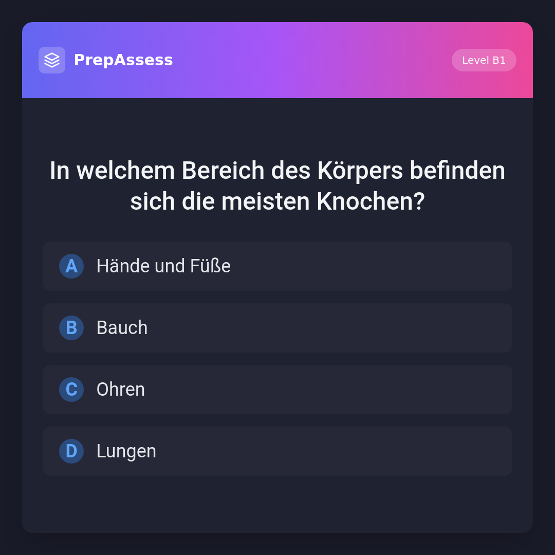 In welchem Bereich des Körpers befinden sich die meisten Knochen?