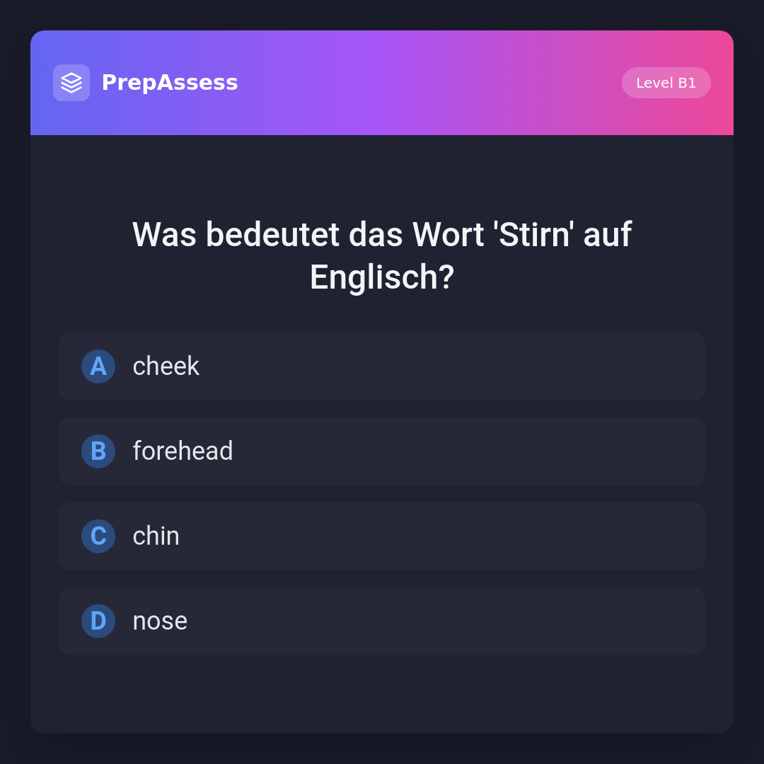 Was bedeutet das Wort 'Stirn' auf Englisch?