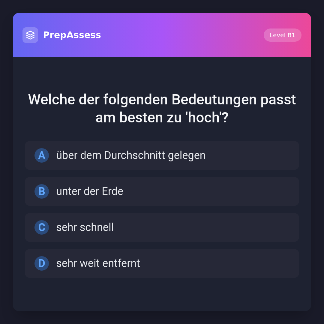 Welche der folgenden Bedeutungen passt am besten zu 'hoch'?