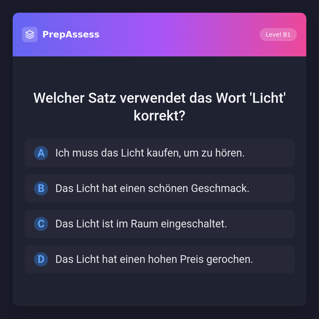 Welcher Satz verwendet das Wort 'Licht' korrekt?