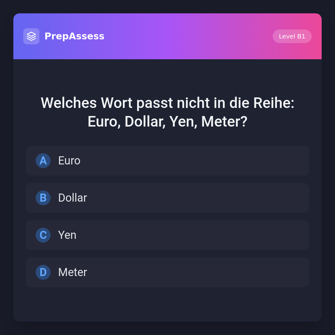 Welches Wort passt nicht in die Reihe: Euro, Dollar, Yen, Meter?