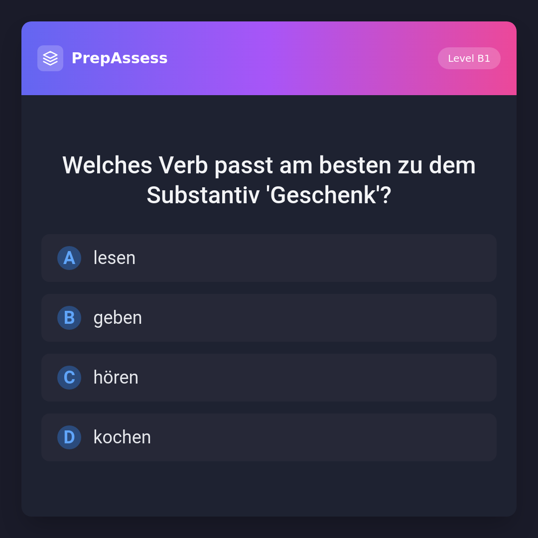 Welches Verb passt am besten zu dem Substantiv 'Geschenk'?