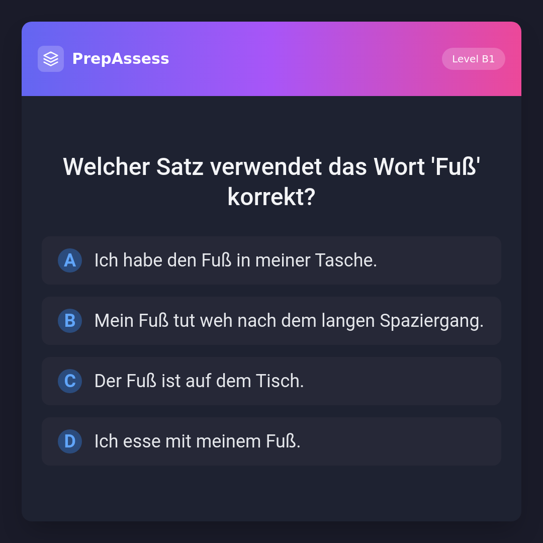 Welcher Satz verwendet das Wort 'Fuß' korrekt?