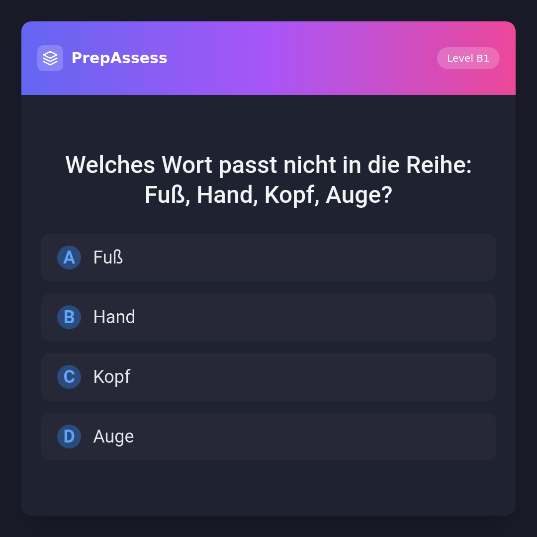 Welches Wort passt nicht in die Reihe: Fuß, Hand, Kopf, Auge?
