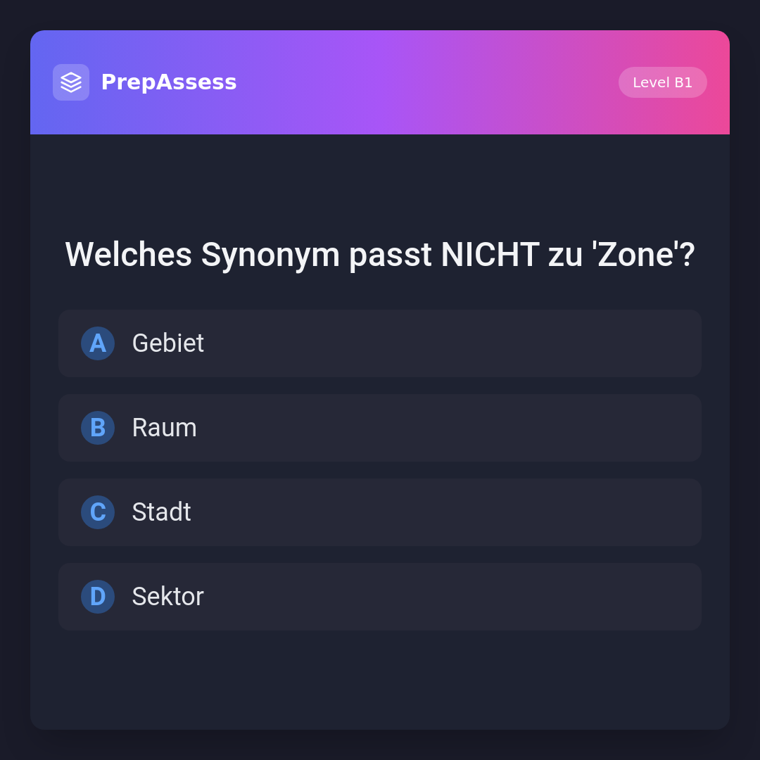 Welches Synonym passt NICHT zu 'Zone'?