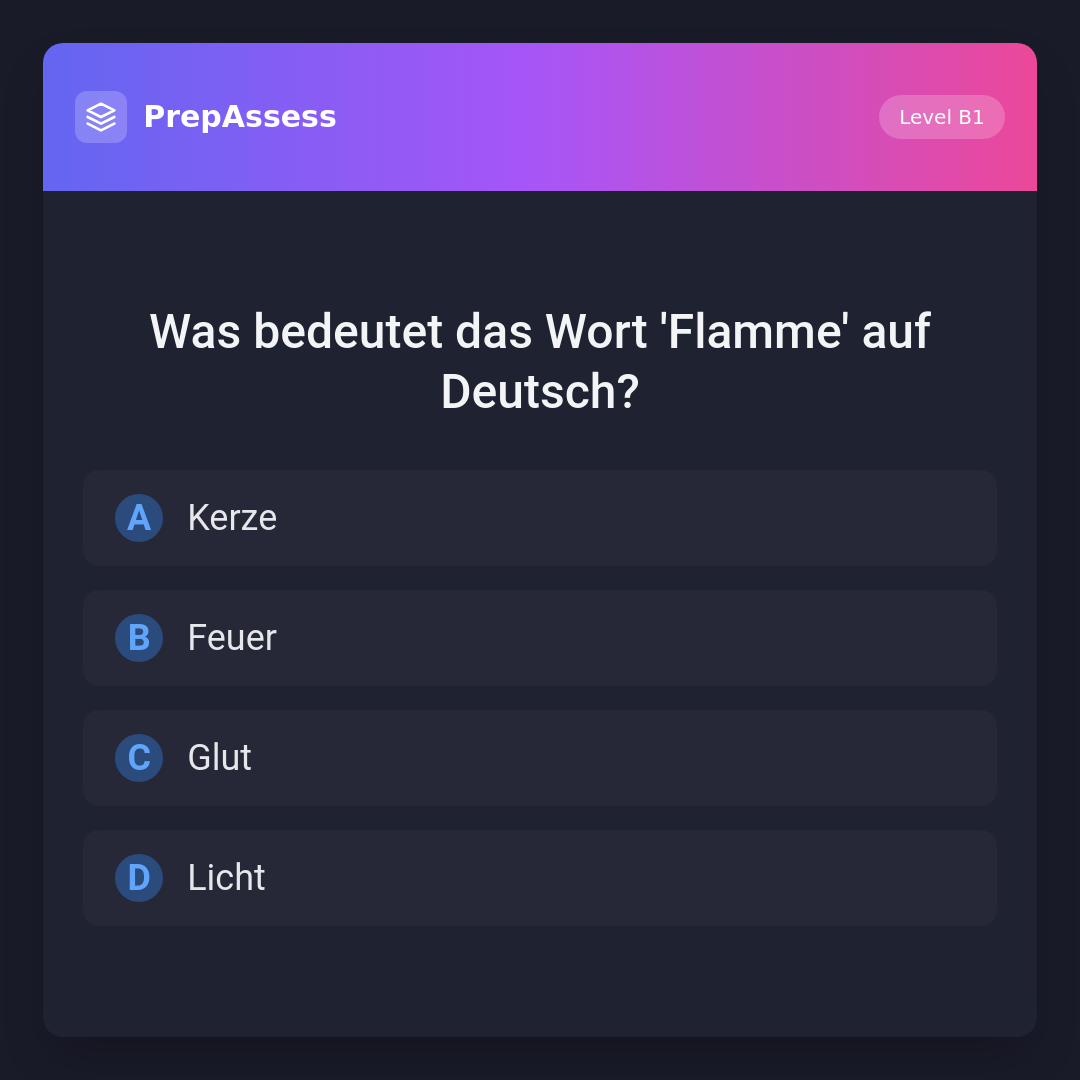 Was bedeutet das Wort 'Flamme' auf Deutsch?