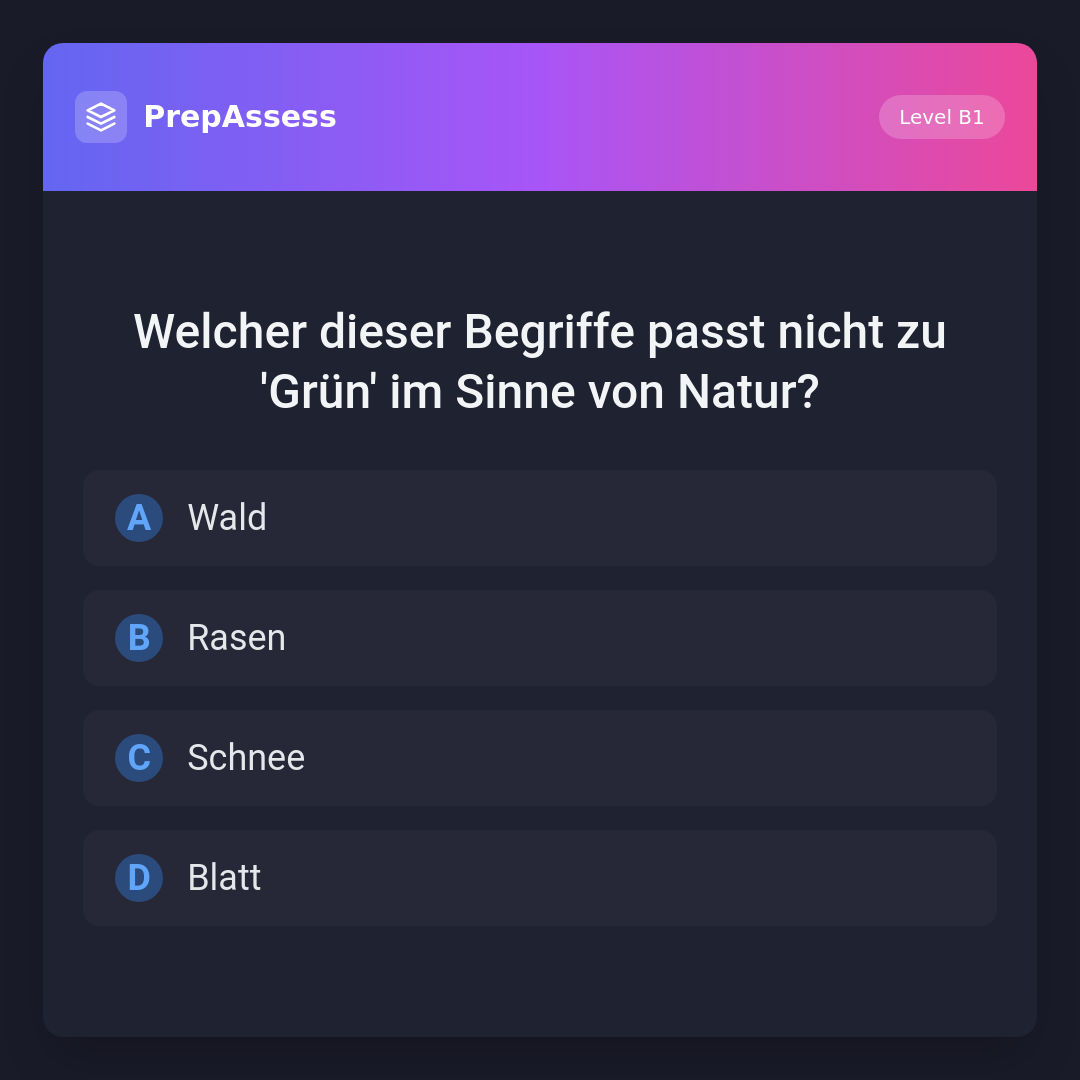 Welcher dieser Begriffe passt nicht zu 'Grün' im Sinne von Natur?