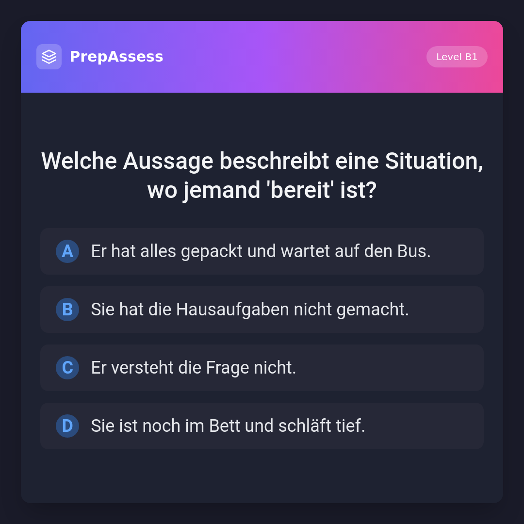 Welche Aussage beschreibt eine Situation, wo jemand 'bereit' ist?