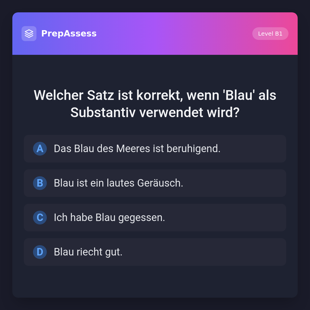 Welcher Satz ist korrekt, wenn 'Blau' als Substantiv verwendet wird?