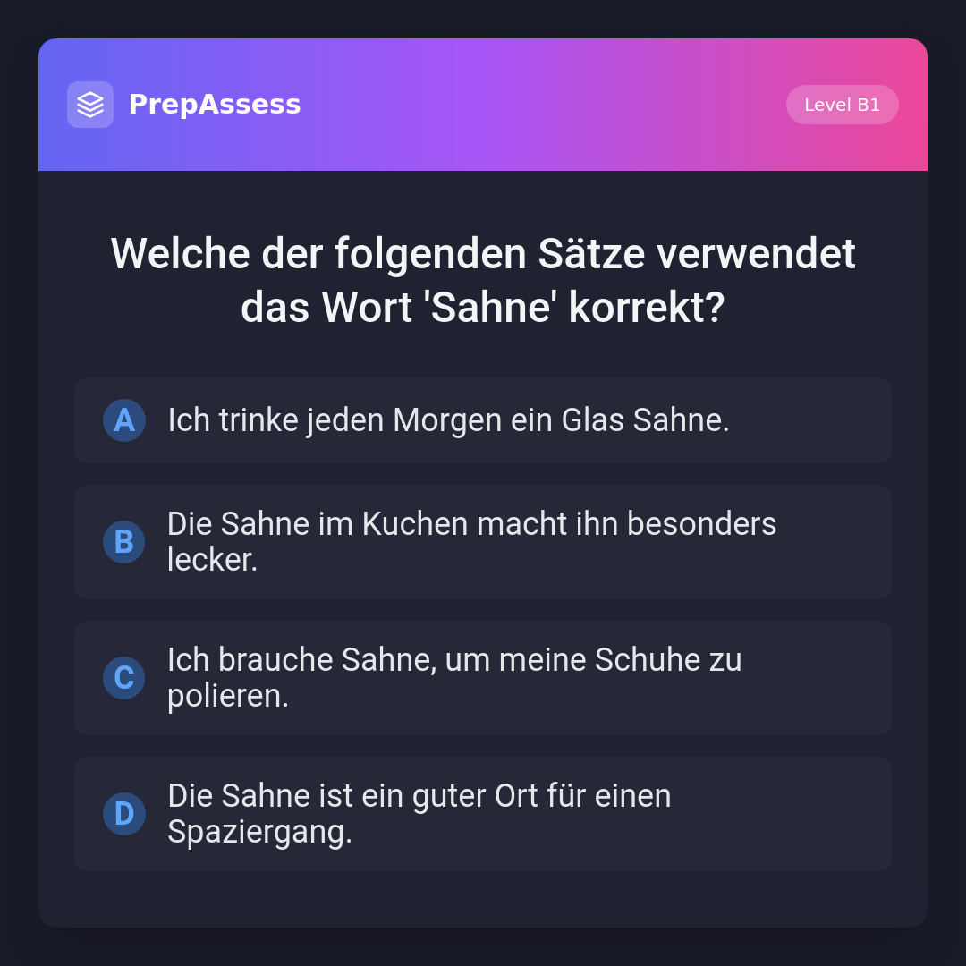 Welche der folgenden Sätze verwendet das Wort 'Sahne' korrekt?