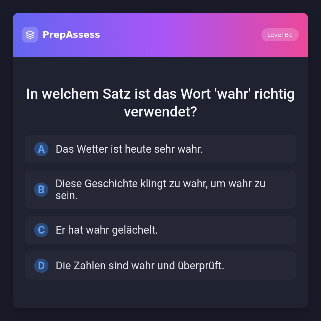 In welchem Satz ist das Wort 'wahr' richtig verwendet?