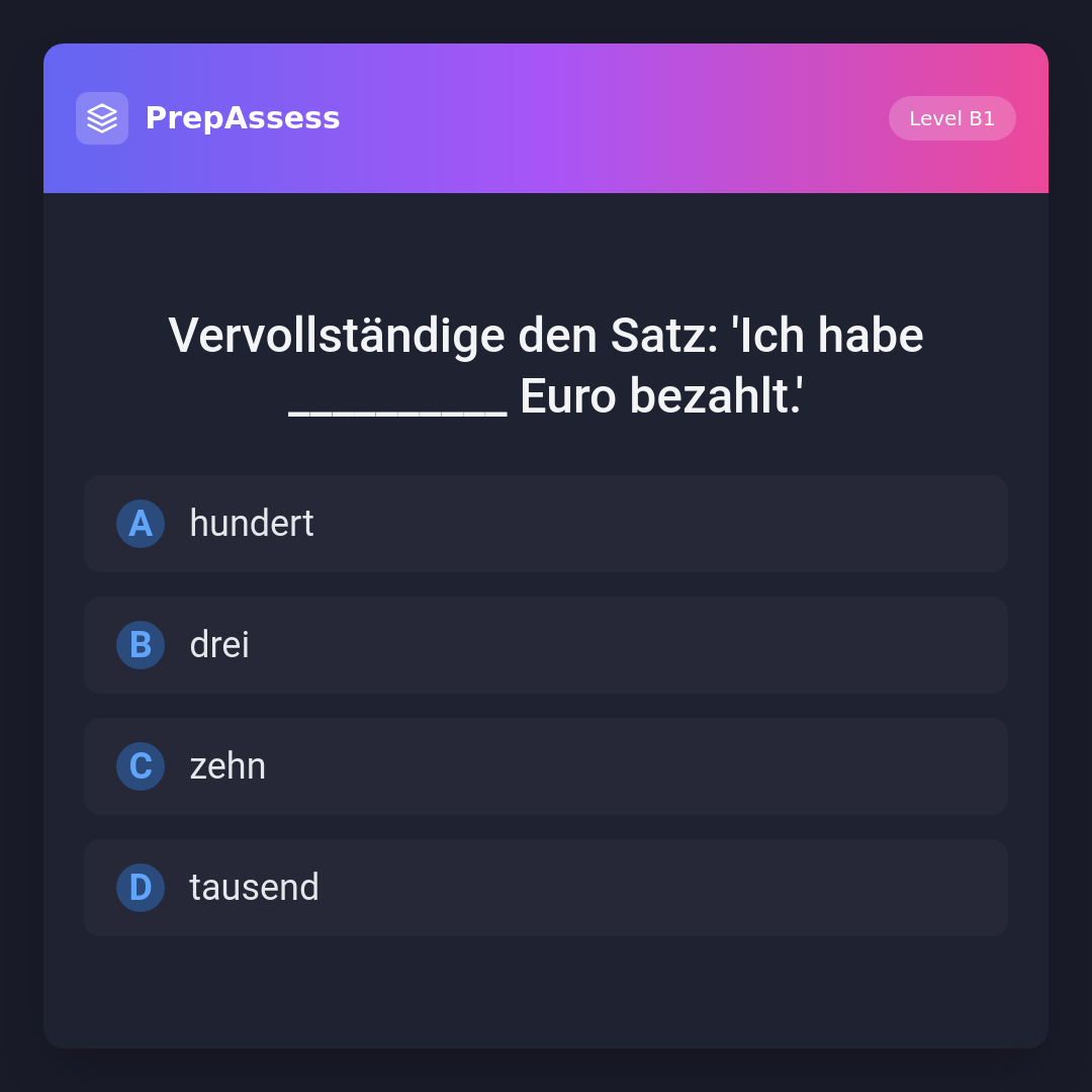 Vervollständige den Satz: 'Ich habe __________ Euro bezahlt.'
