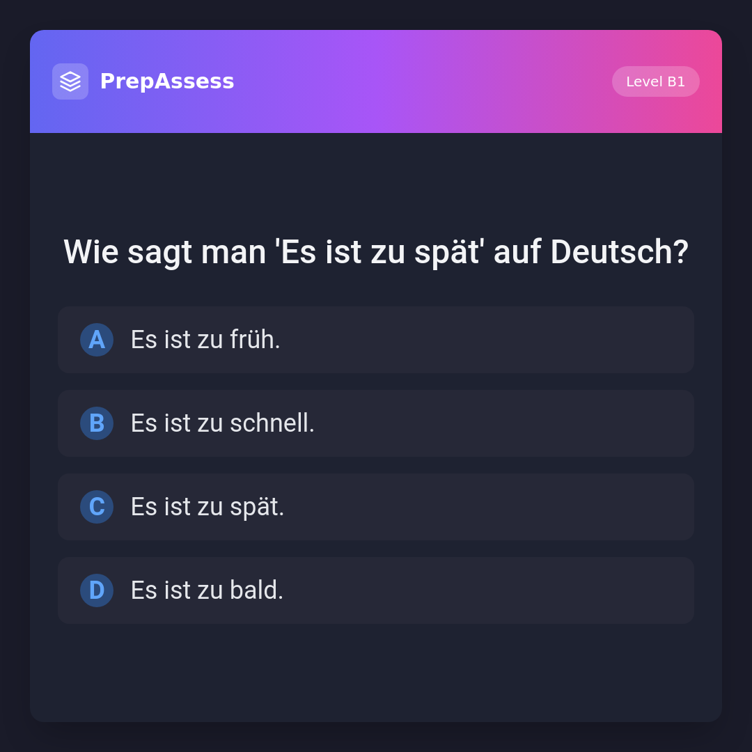 Wie sagt man 'Es ist zu spät' auf Deutsch?