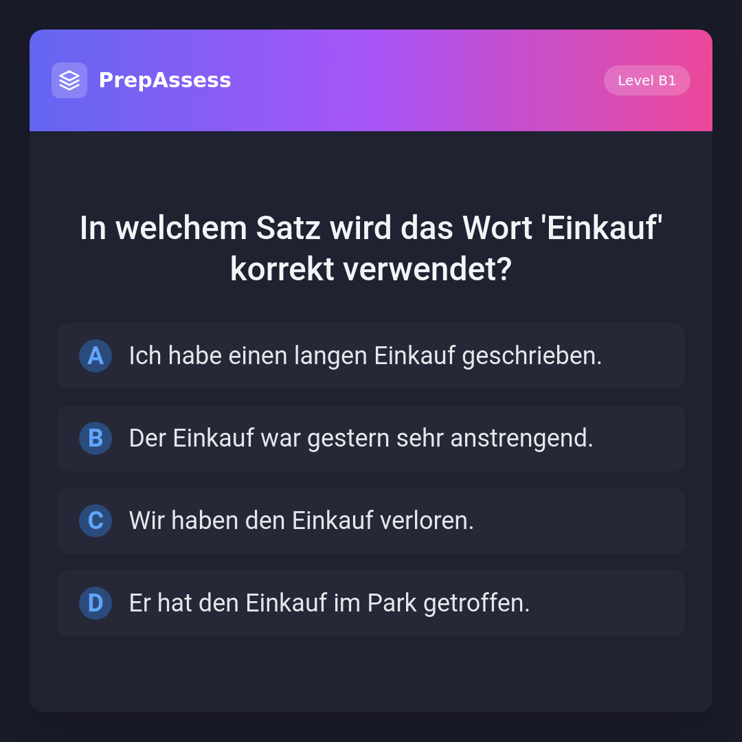 In welchem Satz wird das Wort 'Einkauf' korrekt verwendet?