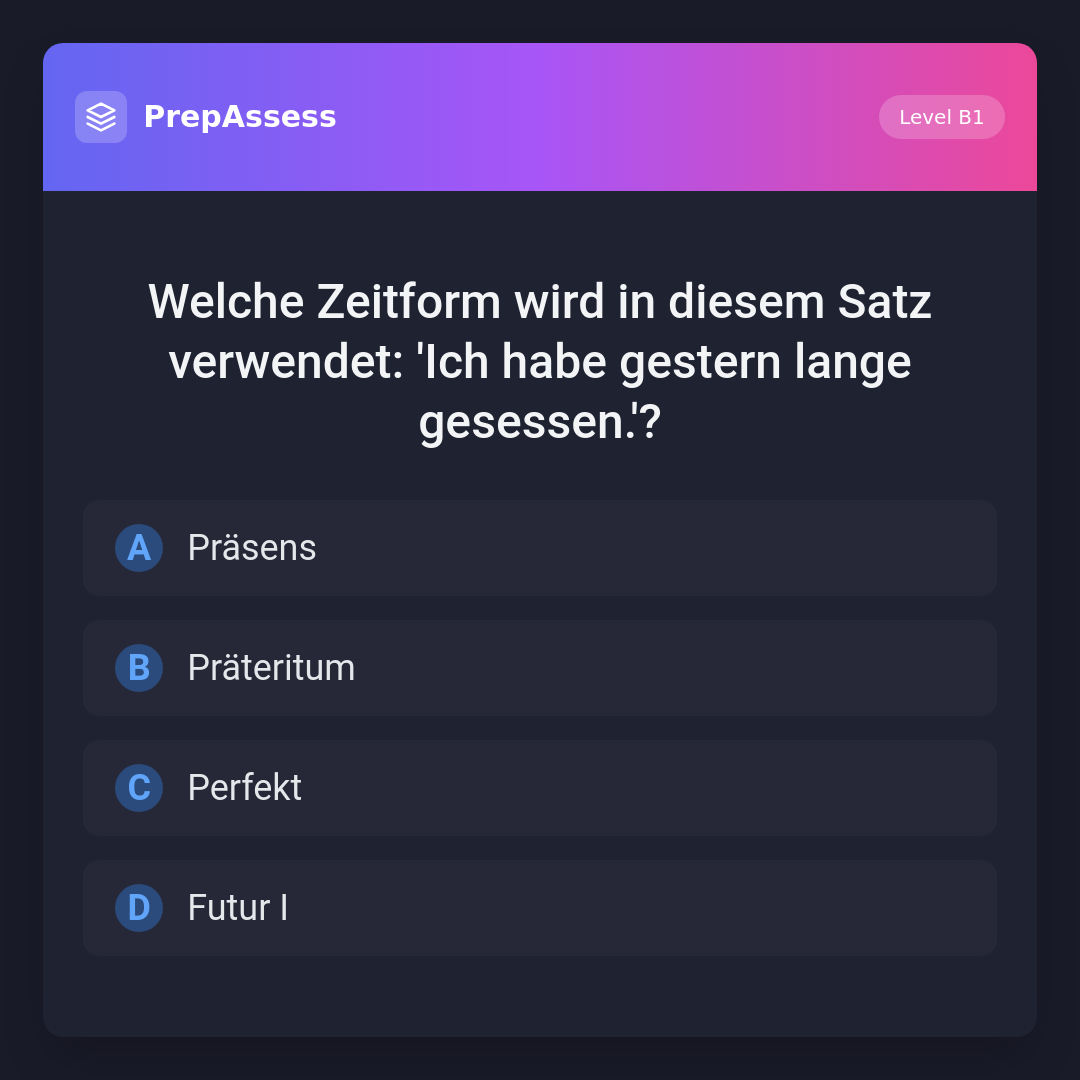 Welche Zeitform wird in diesem Satz verwendet: 'Ich habe gestern lange gesessen.'?