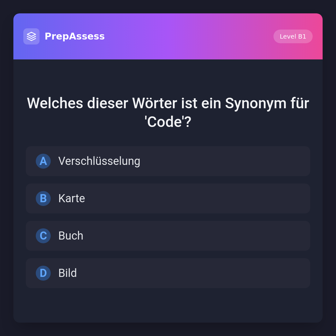 Welches dieser Wörter ist ein Synonym für 'Code'?