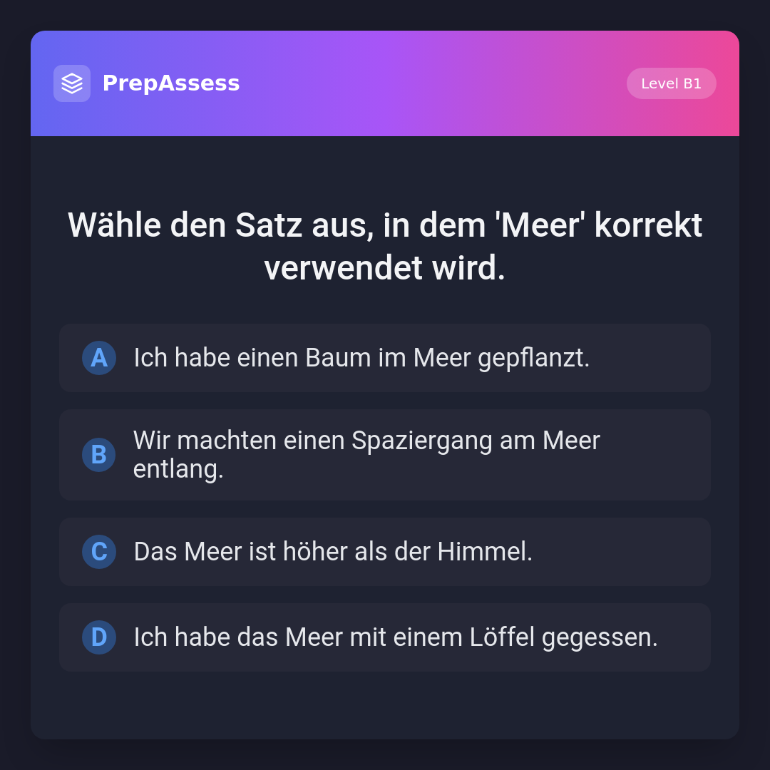 Wähle den Satz aus, in dem 'Meer' korrekt verwendet wird.