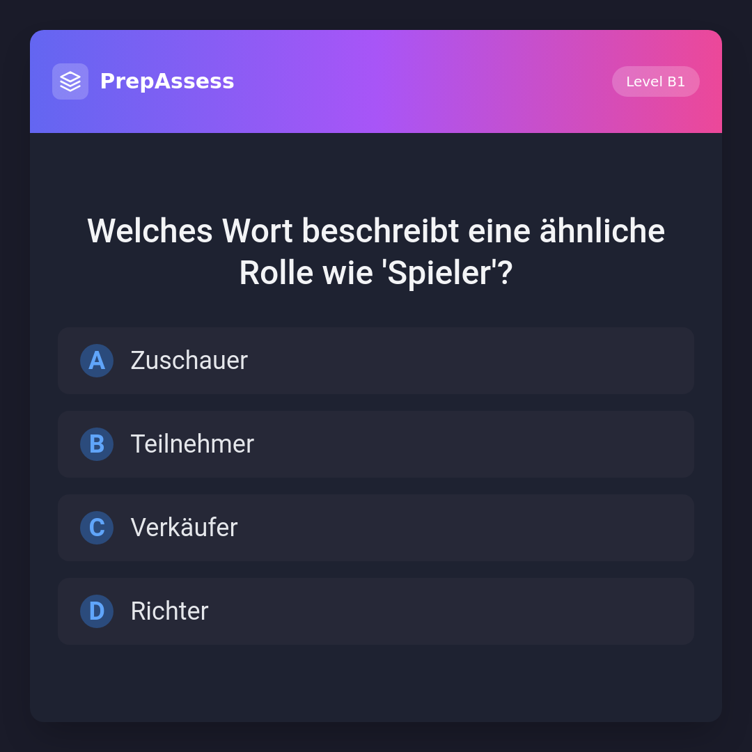 Welches Wort beschreibt eine ähnliche Rolle wie 'Spieler'?