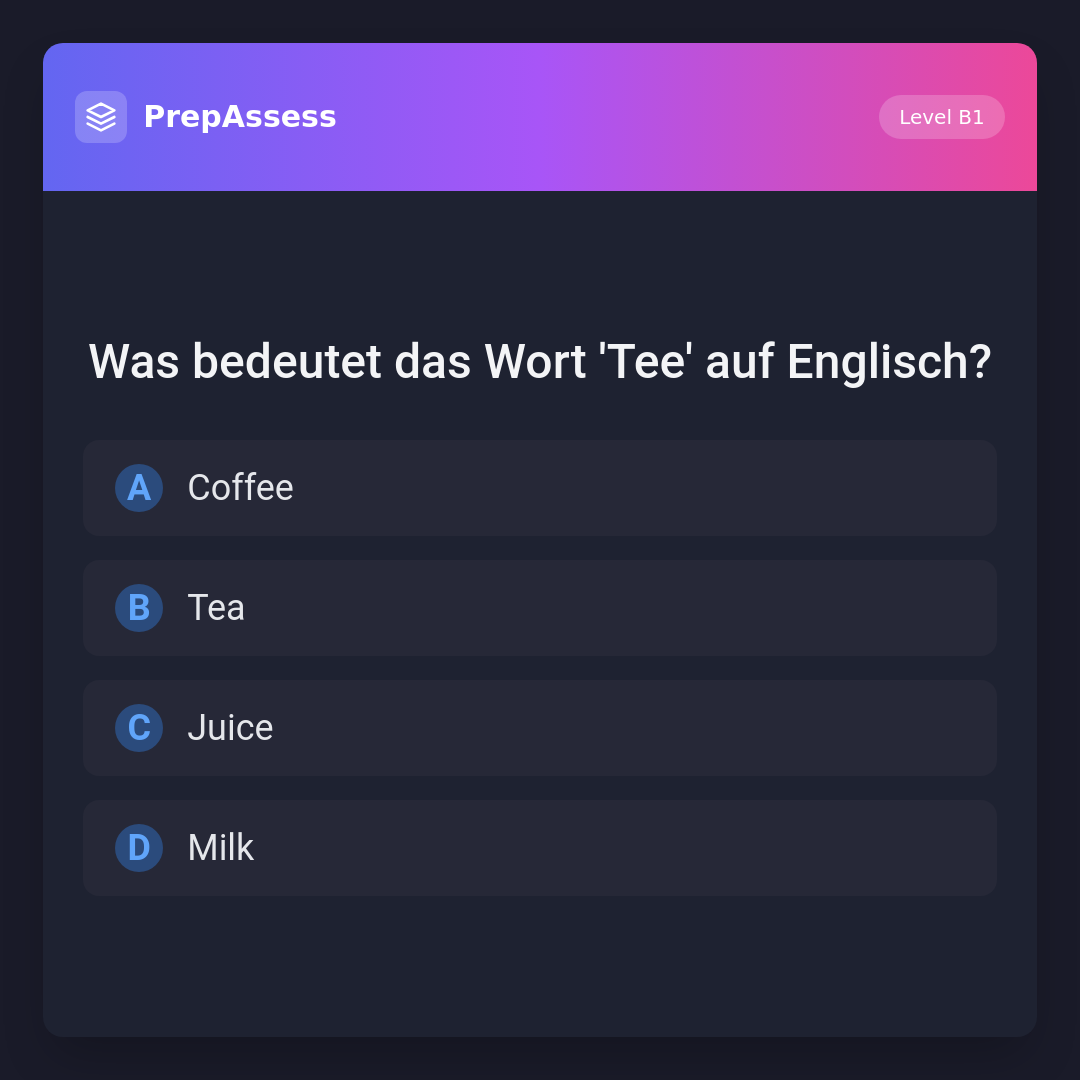 Was bedeutet das Wort 'Tee' auf Englisch?