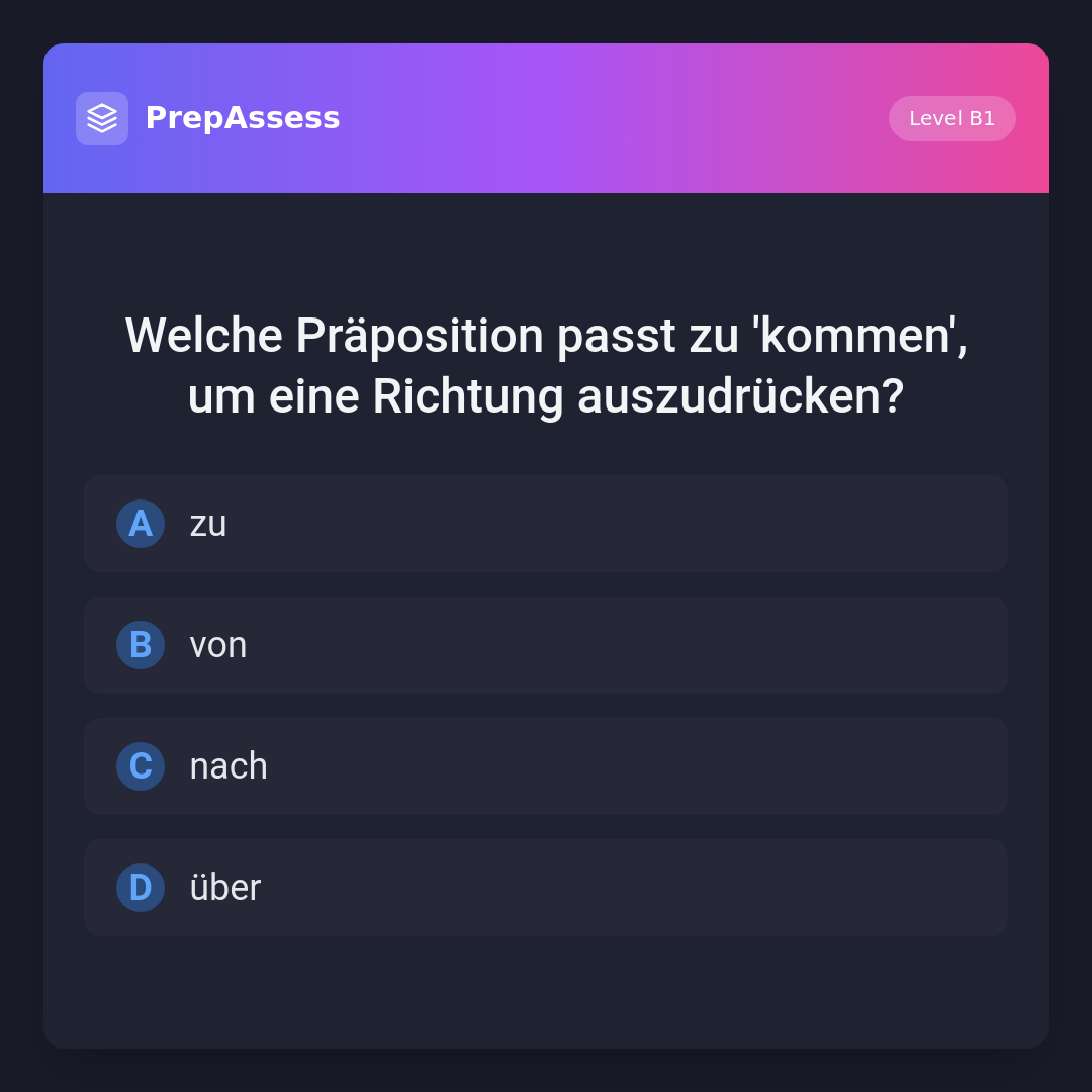 Welche Präposition passt zu 'kommen', um eine Richtung auszudrücken?