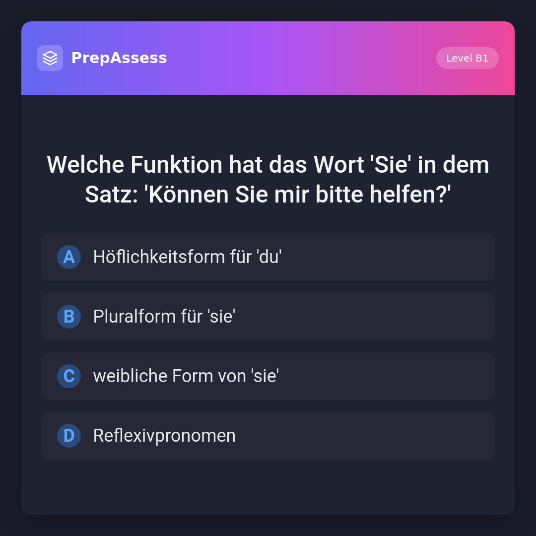Welche Funktion hat das Wort 'Sie' in dem Satz: 'Können Sie mir bitte helfen?'