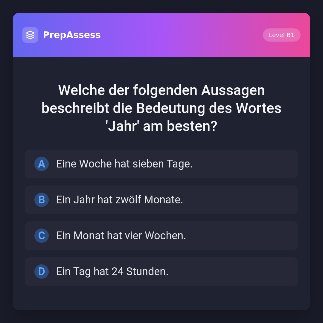 Welche der folgenden Aussagen beschreibt die Bedeutung des Wortes 'Jahr' am besten?