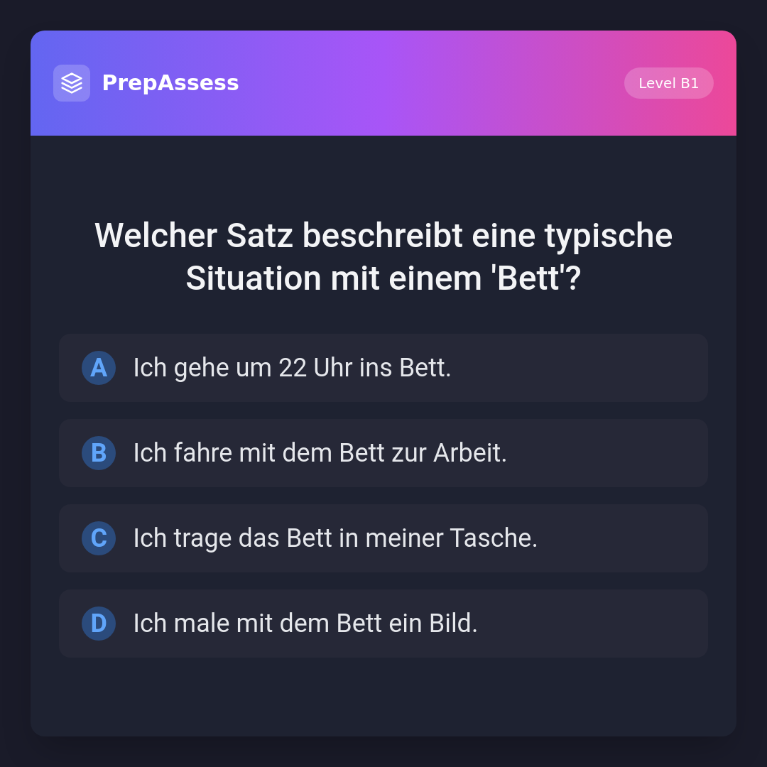 Welcher Satz beschreibt eine typische Situation mit einem 'Bett'?