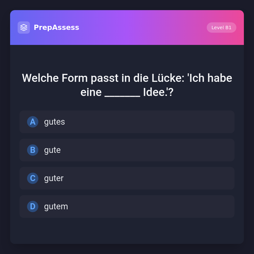 Welche Form passt in die Lücke: 'Ich habe eine _______ Idee.'?