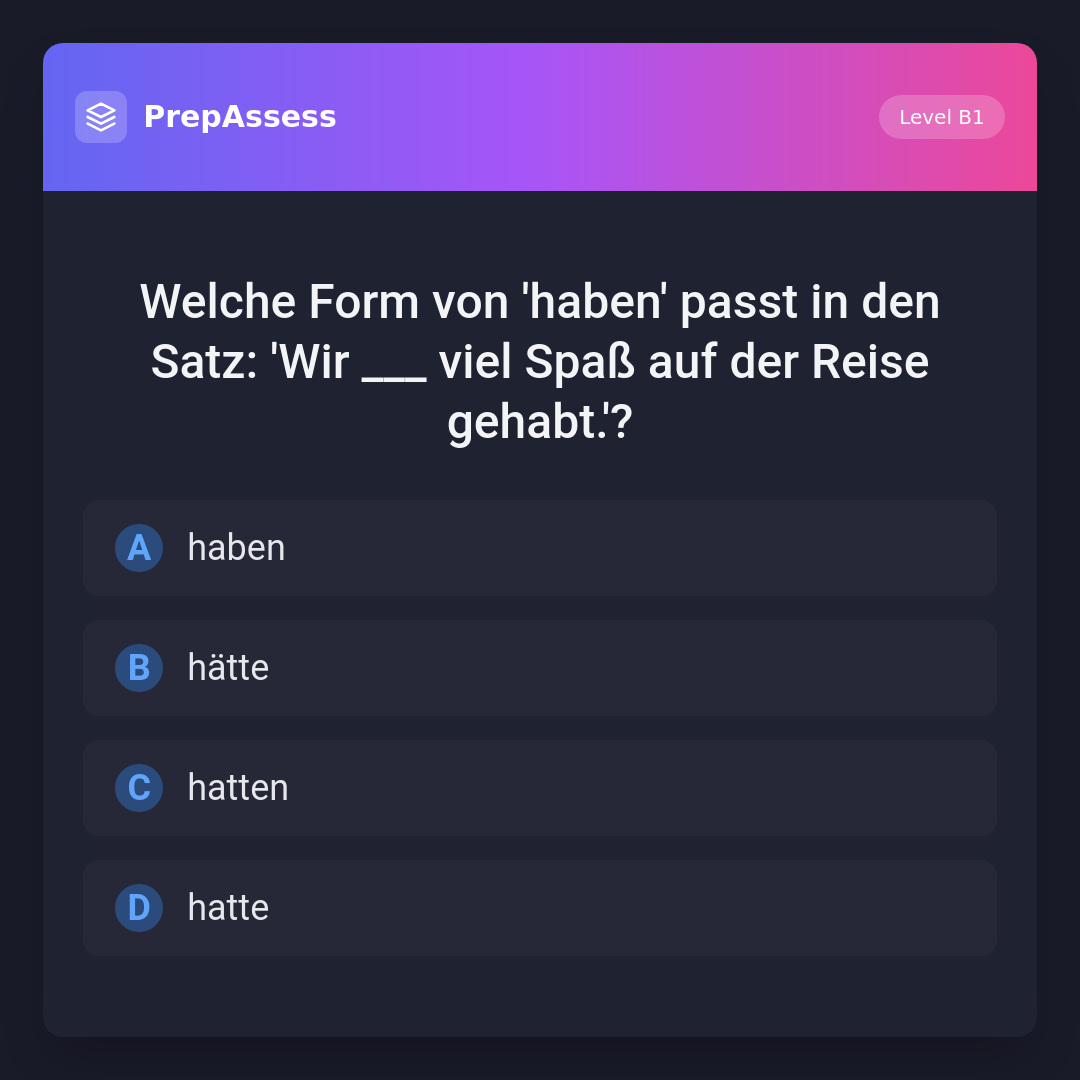 Welche Form von 'haben' passt in den Satz: 'Wir ___ viel Spaß auf der Reise gehabt.'?