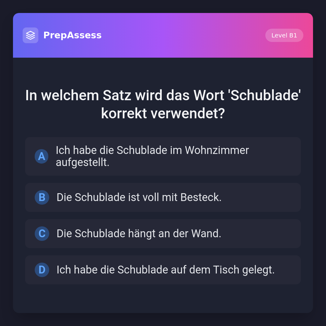In welchem Satz wird das Wort 'Schublade' korrekt verwendet?