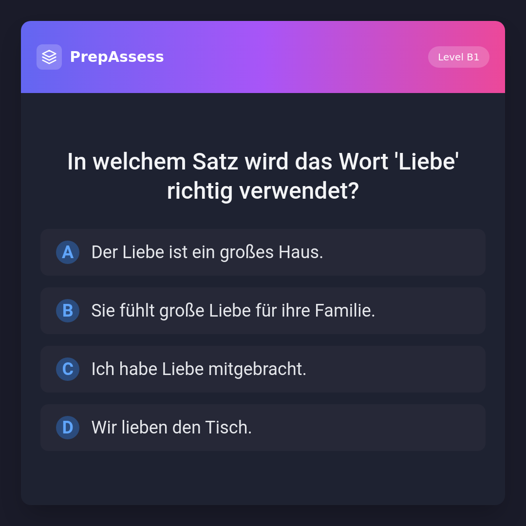 In welchem Satz wird das Wort 'Liebe' richtig verwendet?