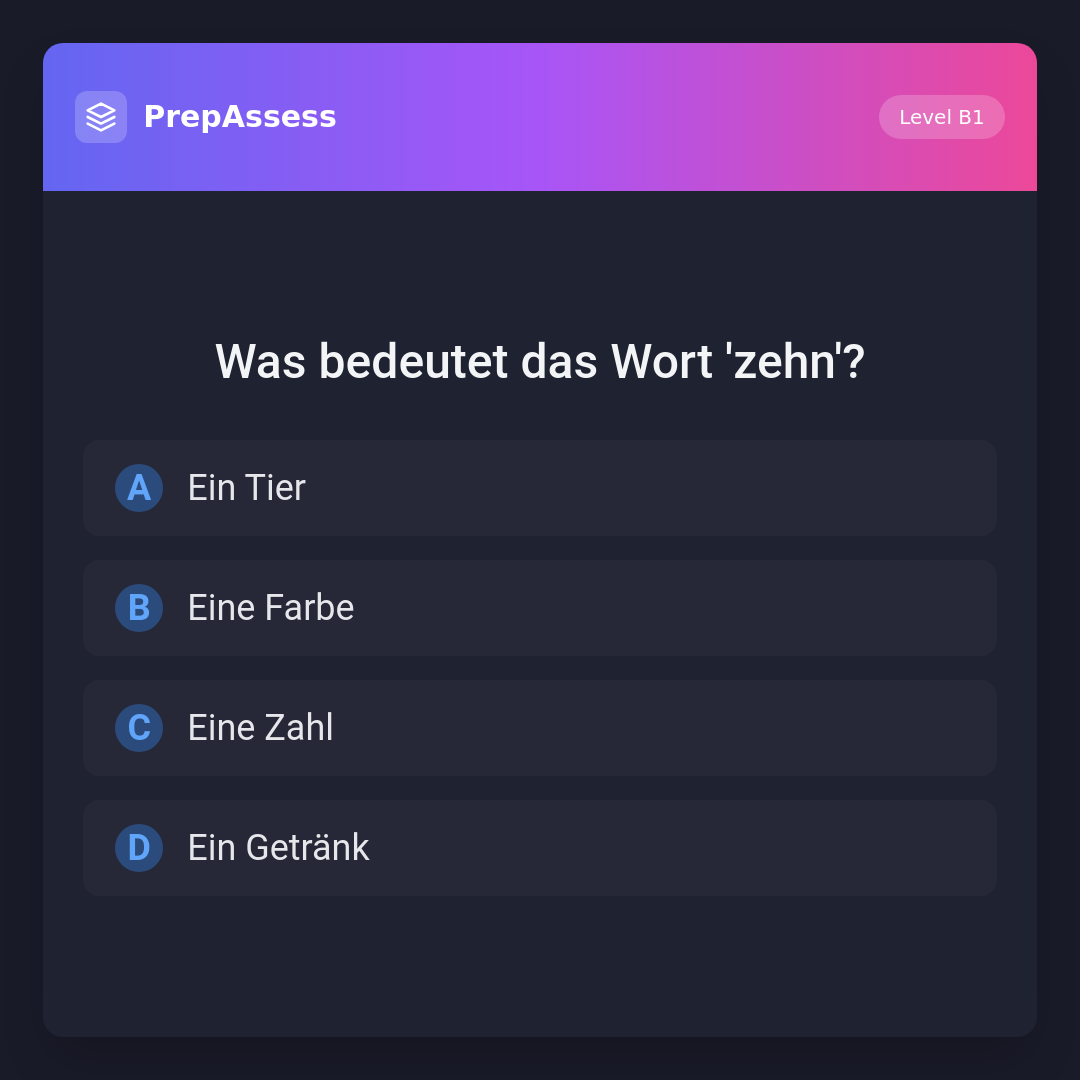 'Zehn' ist eine Zahl. Es ist die Zahl nach neun und vor elf. Die anderen Optionen beziehen sich auf Kategorien, die mit Zahlen nichts zu tun haben.