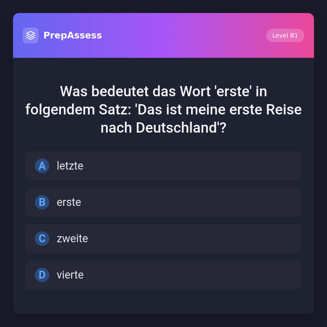 Was bedeutet das Wort 'erste' in folgendem Satz: 'Das ist meine erste Reise nach Deutschland'?