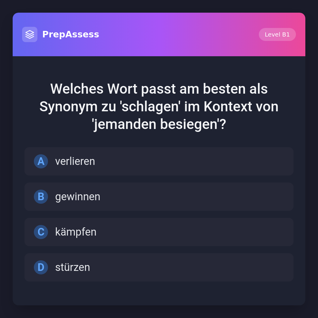 Welches Wort passt am besten als Synonym zu 'schlagen' im Kontext von 'jemanden besiegen'?